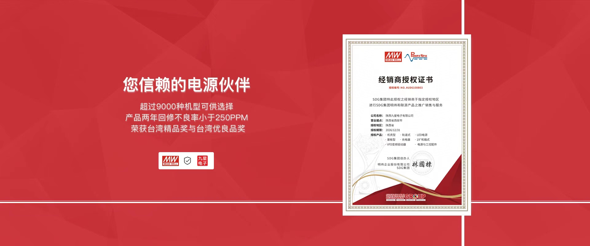 陜西九星電子有限公司是主要從事開關電源、電源模塊、控制與傳動元件、液晶顯示器等產品銷售的專業型企業。是國內外多家企業在西安及西北地區的授權經銷商,主要代理臺灣明緯開關電源、模塊電源、霍尼韋爾控制與傳動元件、日本Noritake VFD顯示器、臺灣華凌光電顯示屏等。
